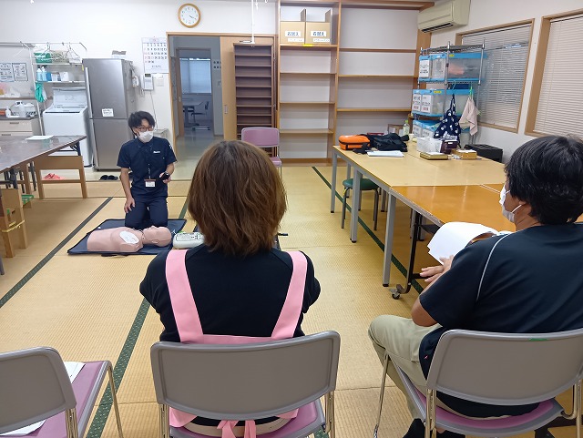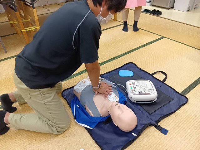 といった操作手順に加え、心肺蘇生法(CPR)の実技も行いました。
