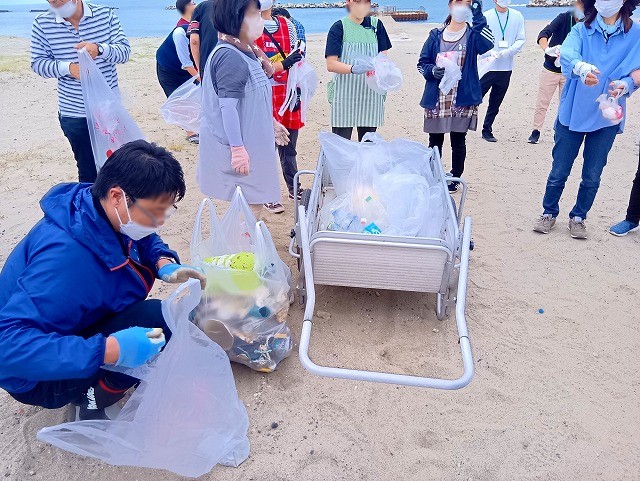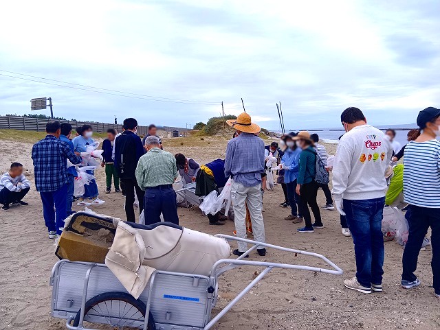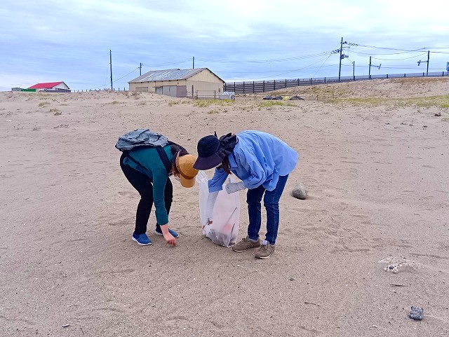 実習に来ている学生、職員と一緒に海岸清掃を行いました!