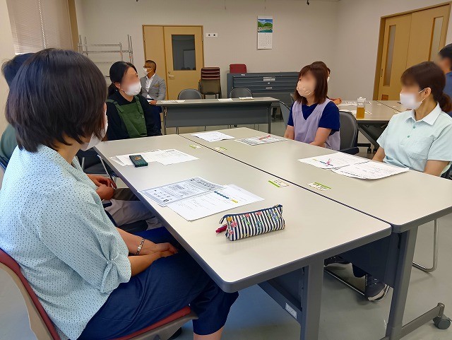 グループワークでは、自身の職場や業務内容についてであったり、最近職場であった「にっこりほっと」したことをテーマに語り合いました。